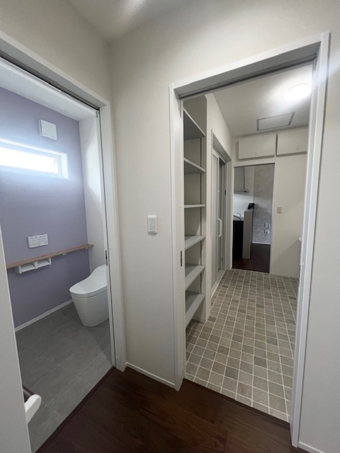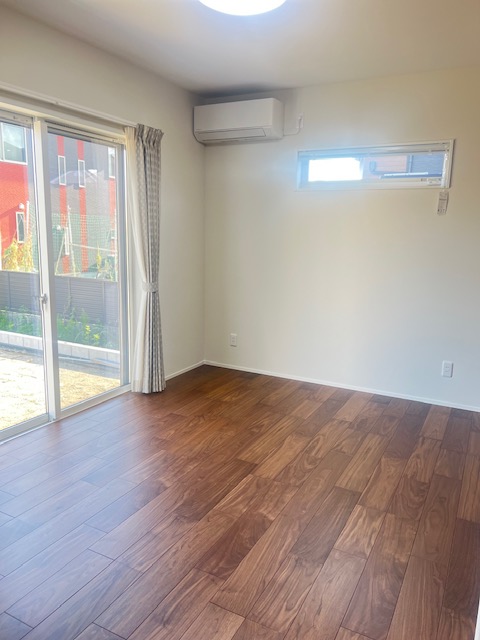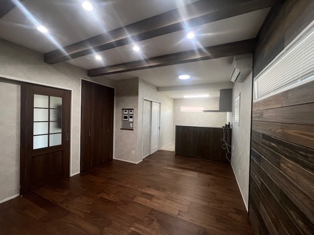 内装はウオールナット色の床板に薄いグレー色のクロスが落ち着いた雰囲気です。