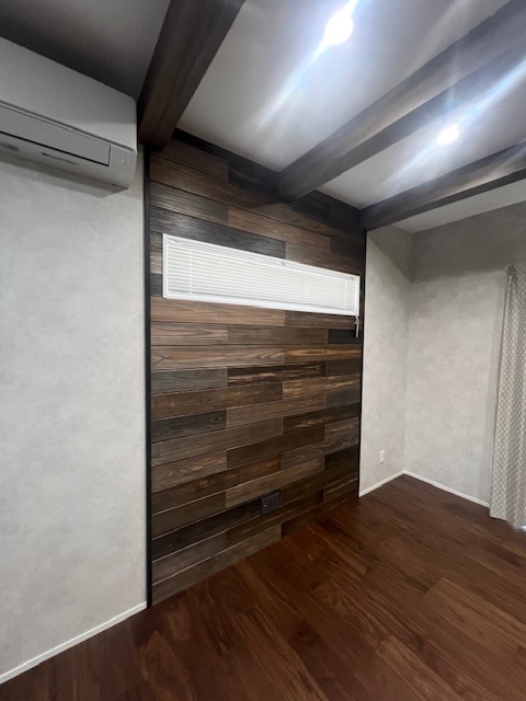 アクセントウオールには古材をリメイクさせて頂きました。ビンテージ感もありカッコイイです(^O^)